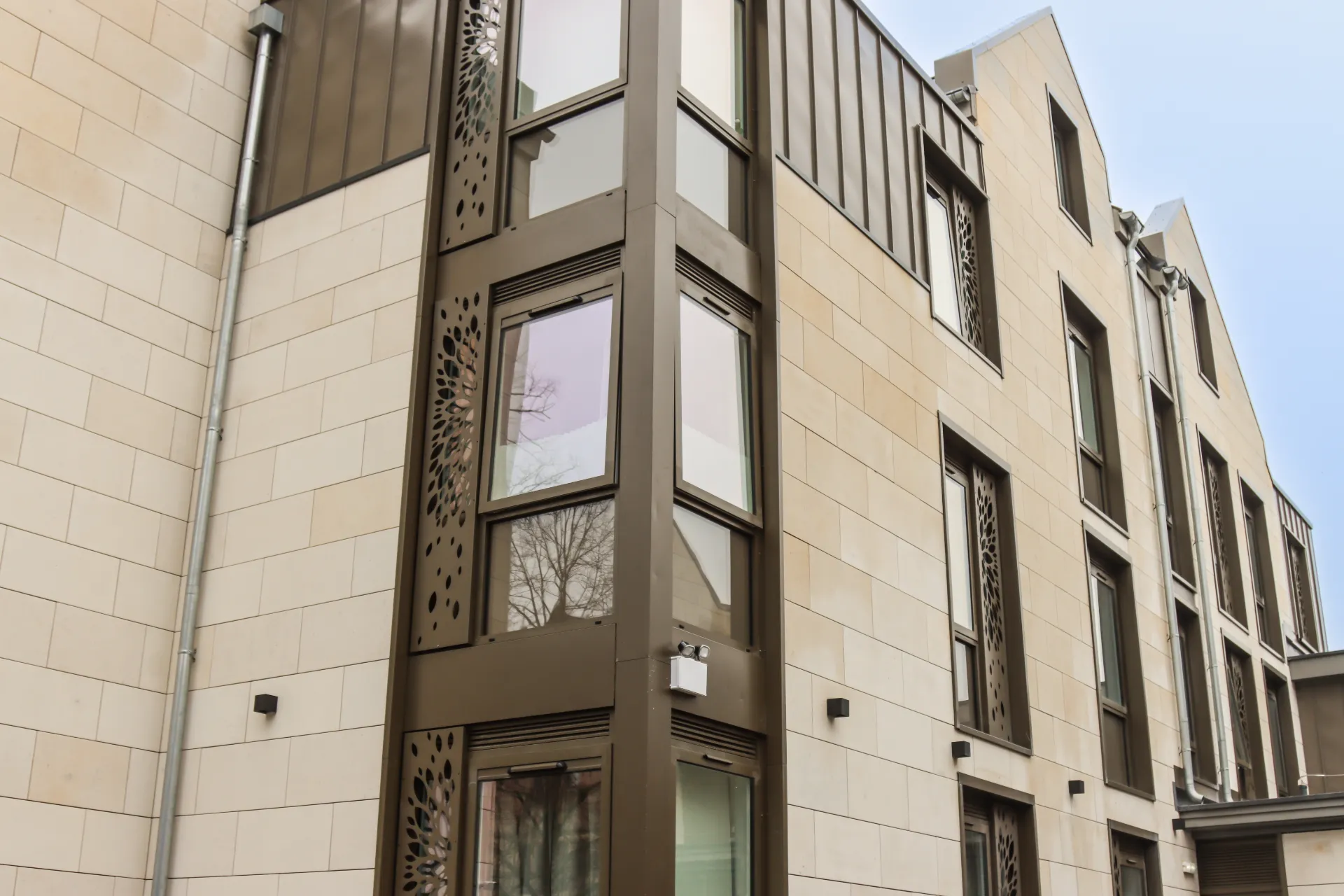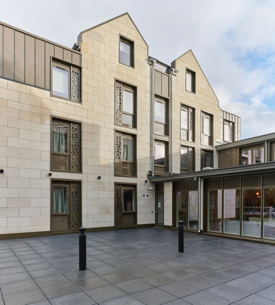 The façade specification uses Park Lane Bath stone Base bed, selected for its authentic Bath character, high grain giving the detail and crisp edges for a contemporary building.